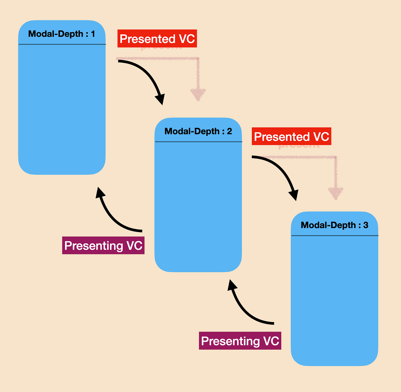 - modal stack이 여러개 쌓였을 때 중간의 VC를 없애려면 중간 VC의 presentingViewController를 사용해서 dismiss 해야한다.